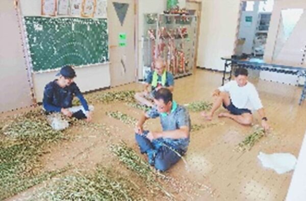 しめ縄作り・配り 活動記録 2025.09.072025.10.01 8月31日(日)児童部の皆さんでしめ縄作りが行われました。町内の不浄を断ち、家を祓い清めるべく子供も大人も協力して作り上げます。 翌週9月7日(日)には、4~6年生の児童を中心に、町内の各ご家庭にしめ縄を配りました。ご参加ご協力いただいた皆様、お疲れ様でした。
