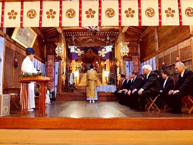 願成寺から力強い除夜の鐘が響く中、役員による玉串奉奠が行われ、西野町内会長からは新年のご挨拶をいただきました。式の後には参列者全員で町内の安全を祈願しました。