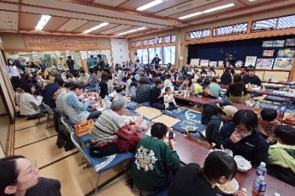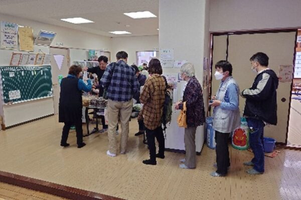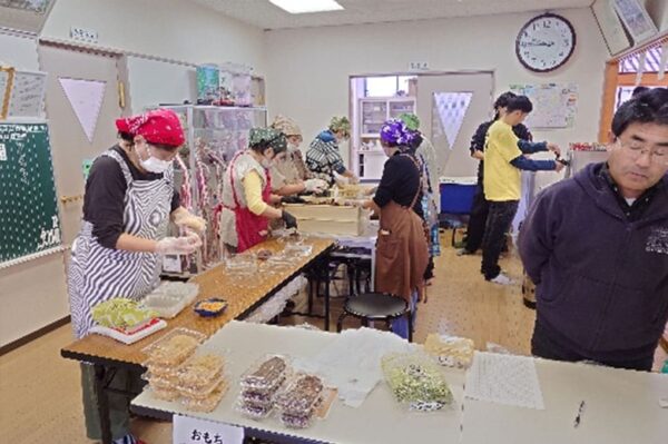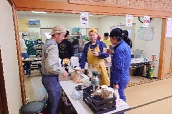 会館室内では、今年も大盛況のお餅、ビール、ジュース、うどん・そばなどに加え、中川さんのコーヒーや自生園さんの綿菓子、婦人会さん独自企画の商品 韓国風ワッフル、チョコバナナ、ポップコーンも売り出され多くの町民で賑わっていました。