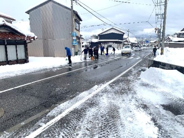 町内除雪作業 活動記録 2026.01.252026.02.28 1月下旬に観測された寒気の影響によって1月25日は顕著な大雪となり、町内は急な積雪に見舞われ、各所で雪かきに追われました。 翌26日には町内会長より、符津小学校通学路の除雪について要請があり、町内役員や各部会メンバー、有志の皆さまのご協力を得て、もりもとの坂および加賀屋前横断歩道周辺の除雪作業を行いました。ご協力いただいた皆さまに心より感謝申し上げます。 今年の町内スローガンは「共助で笑顔」です。このスローガンを胸に、町全体で助け合いながら、災害に強い島町をつくっていきましょう。